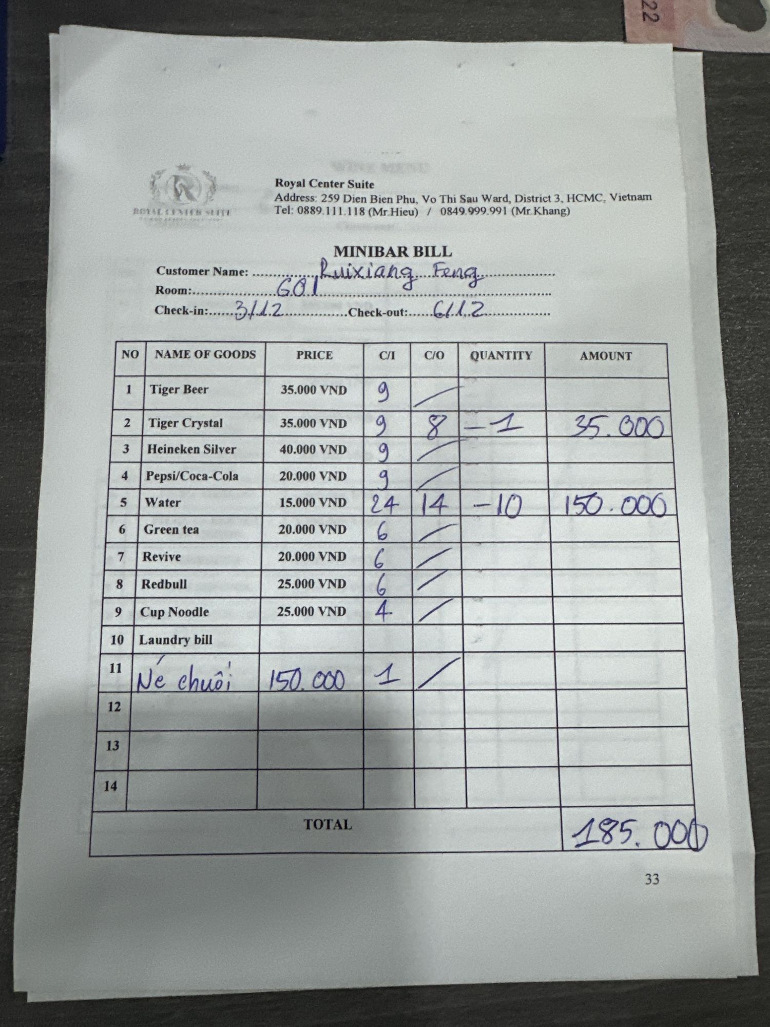 Experia RUIXIANG FENG In 03-12 14 Giờ Out 06-12 11 Giờ