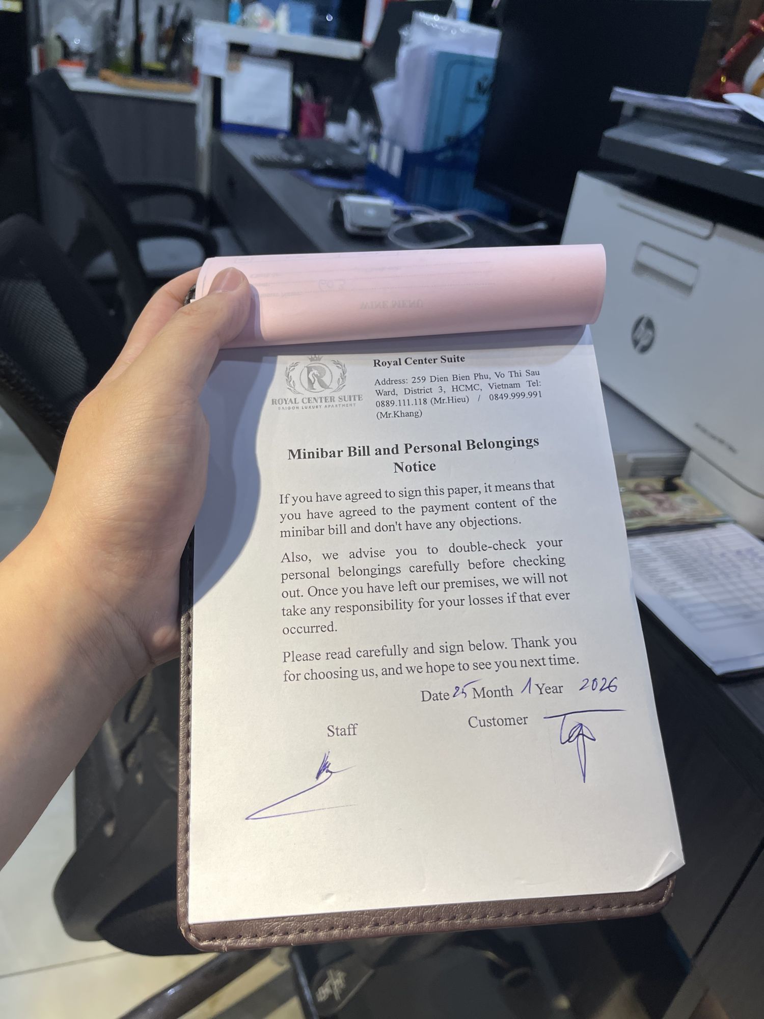 Xác Nhận Check Out Biên Nhận 6046