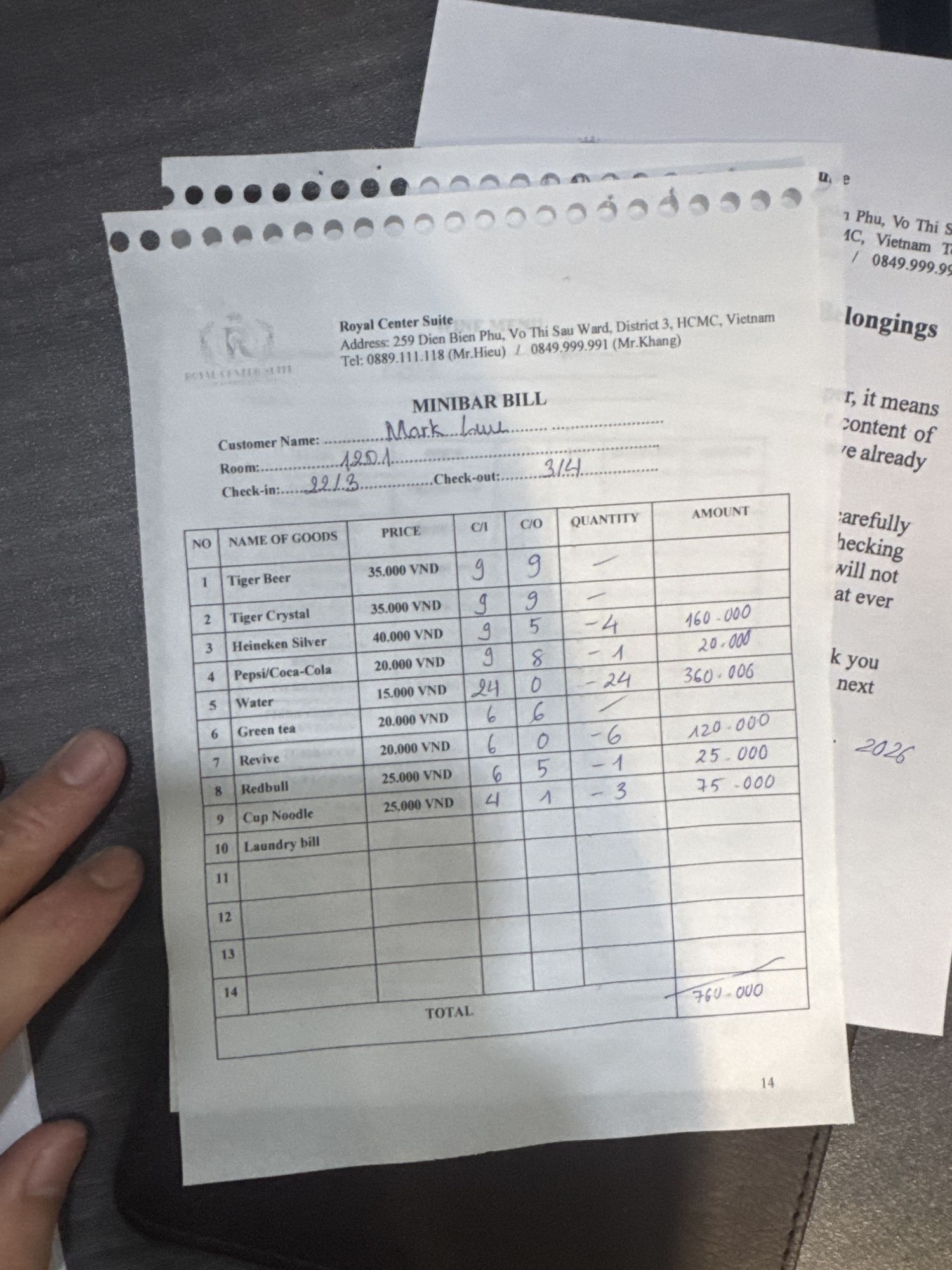 Xác Nhận Check Out Biên Nhận 6328