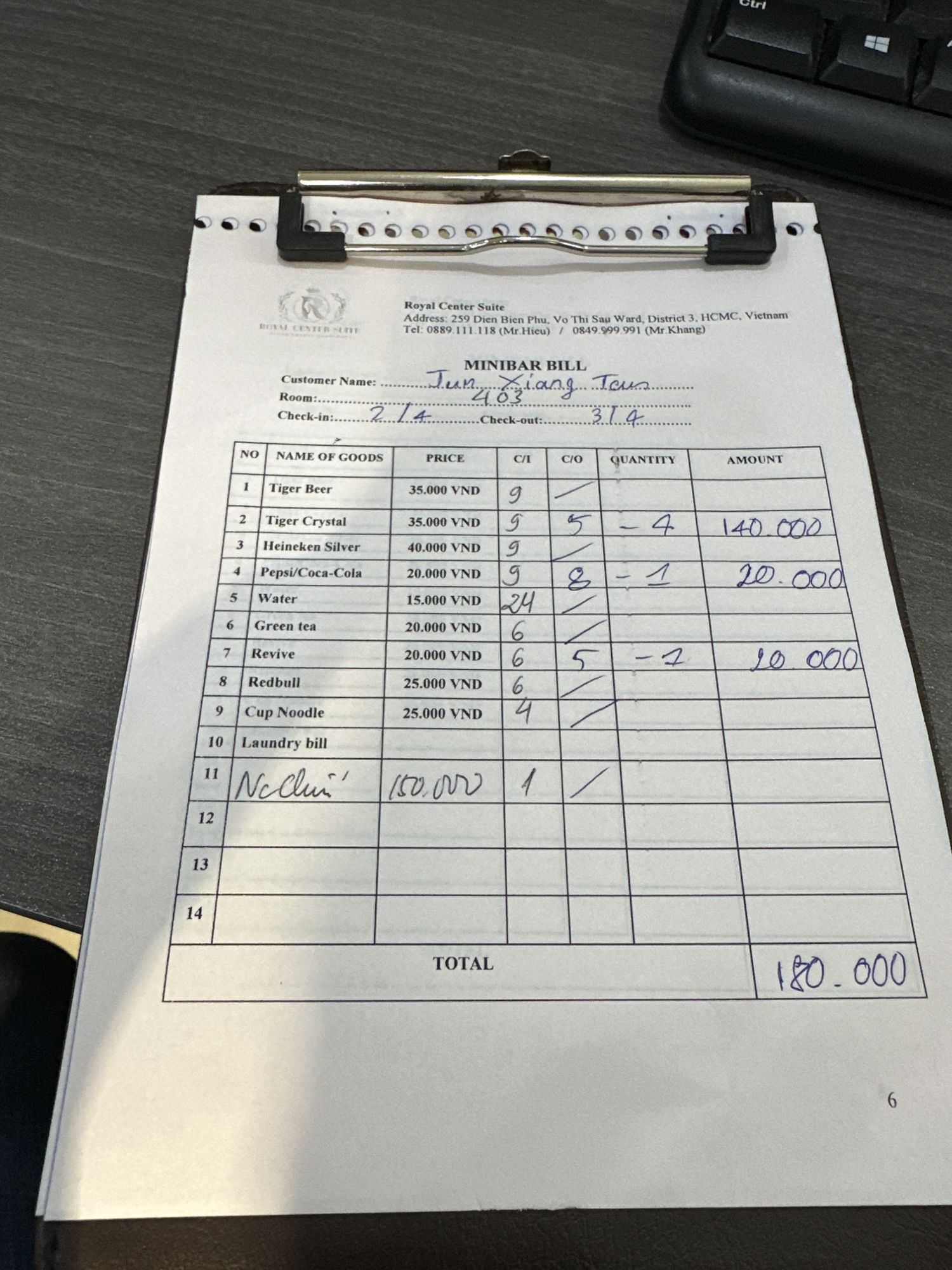 Booking JUN XIANG TAN In 02-04 14 Giờ Out 03-04 11 Giờ