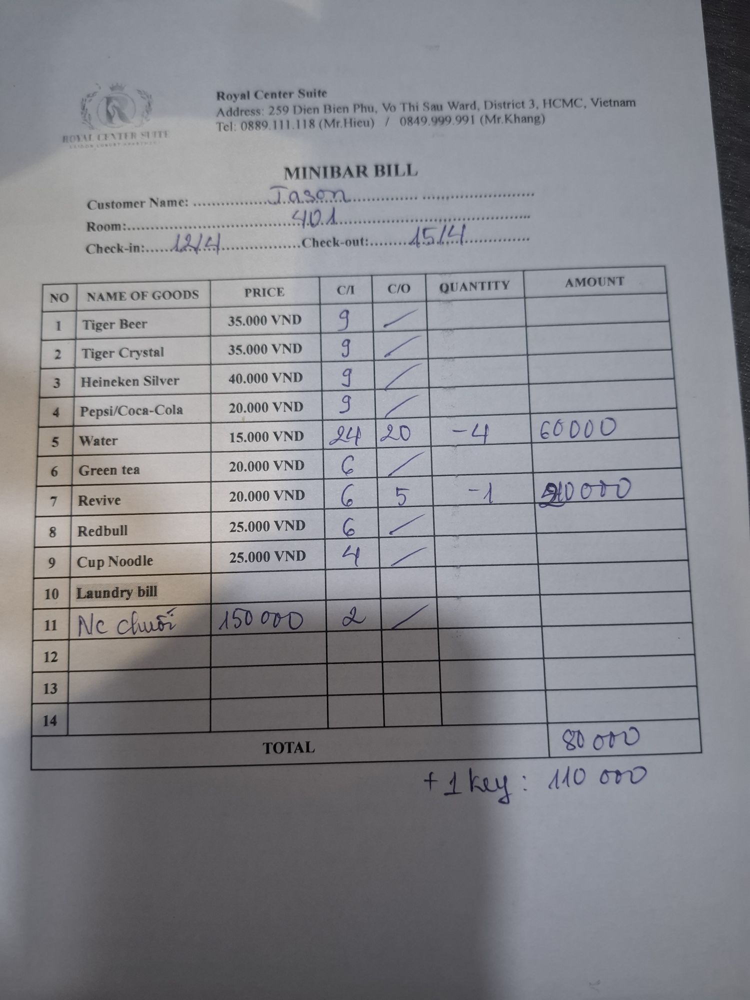 Xác Nhận Check Out Biên Nhận 6462